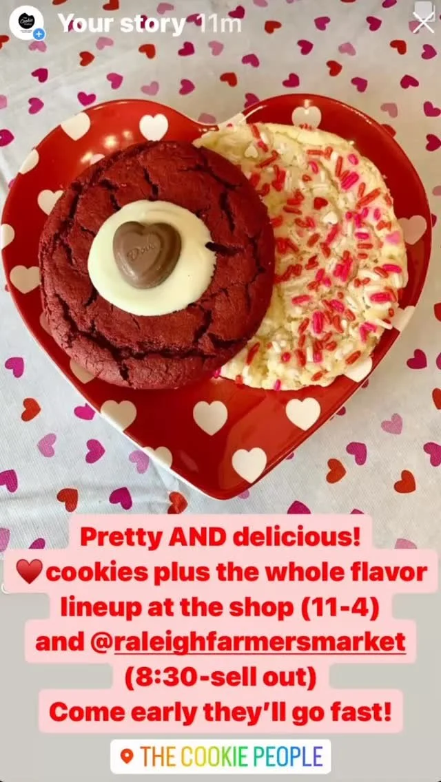 Our shop is open at 2237 Avent Ferry Rd in Raleigh, NC, just a stone’s throw from our State Farmer’s Market location, downtown Raleigh, Dix Park, and located between NC State University’s Main Campus and Centennial Campus. We also serve premium Homeland Creamery ice cream (think cookie shakes and custom made ice cream cookie sandwiches) and espresso drinks using locally roasted beans. Be sure to follow us on social media for updates and events such as monthly cookie & crochet nights.